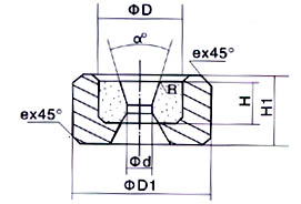 The sketches and sizes of the drawing dies common in use are shown in the following figures and table. |
